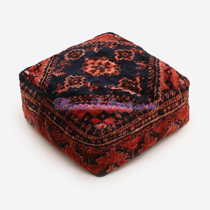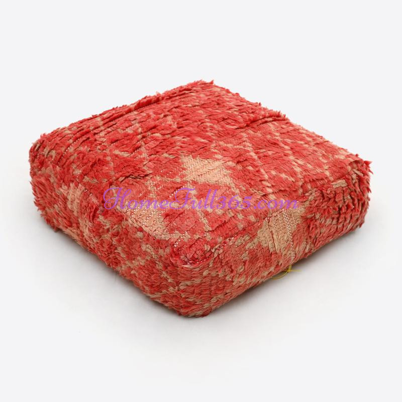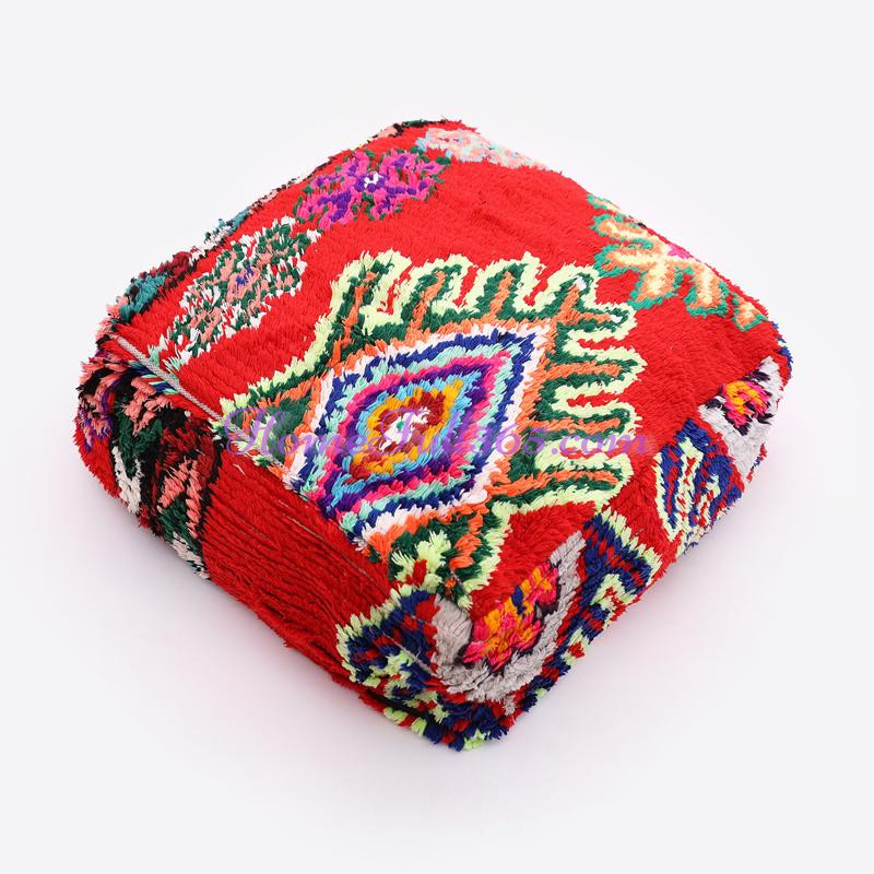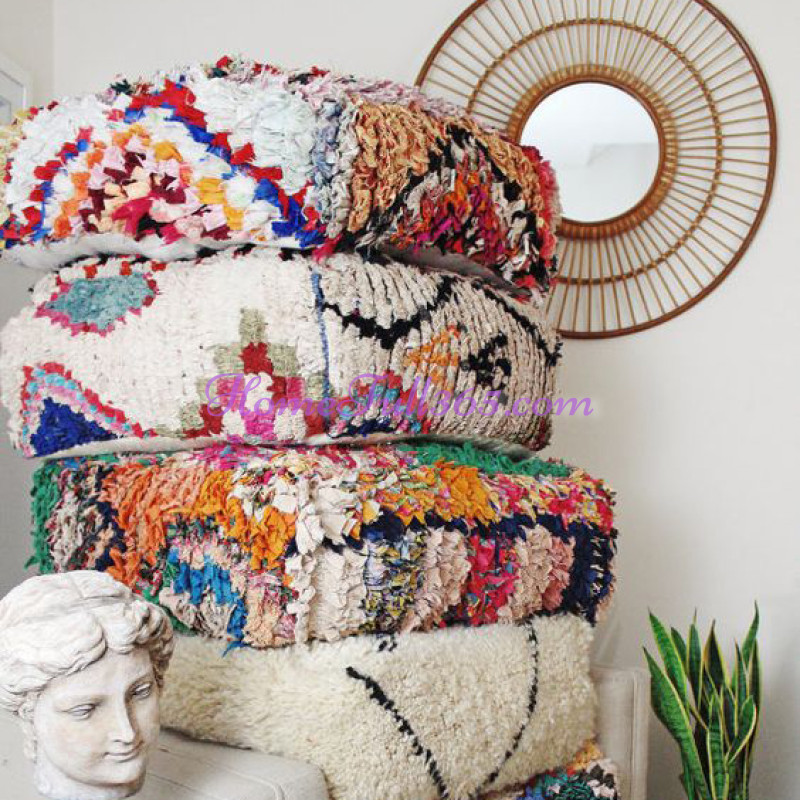 Moroccan Hand Woven Wool Cotton Boho Poufs for Living Room
