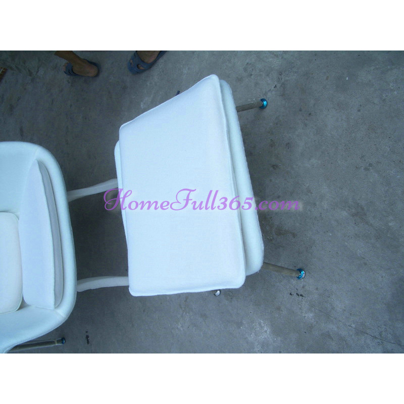 Size:chair:100w * 86d * 92h(cm) ottoman:66w* 53d * 50h(cm) Made of fabric with stainless steel frames.Color can be various.